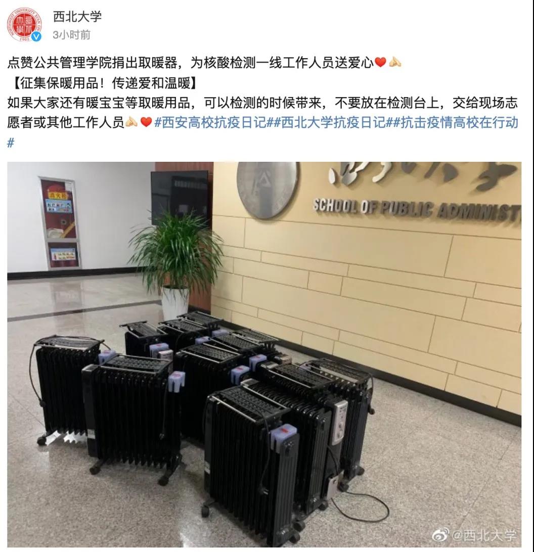 寒冬已至,疫情未止,坚守在抗疫一线的工作也愈加艰苦。日夜巡查、值守的保卫人员,持续采样、送检的医护人员,始终在岗、积极协助的志愿者……这场疫情大考中,有无数人在守望光明,是他们的负重前行守护着西安的日夜,温暖了全体师生的心。随着西安市疫情防控升级,学校实行了更严格的封闭管理,对校内各项事务都进行了紧急部署安排。565net必赢始终密切关注着内况外情,在积极发挥智库作用为本轮疫情防控建言献策的同时,学院也时刻将师生的生命安全与身心健康放在首要位置,并为此做出积极努力。