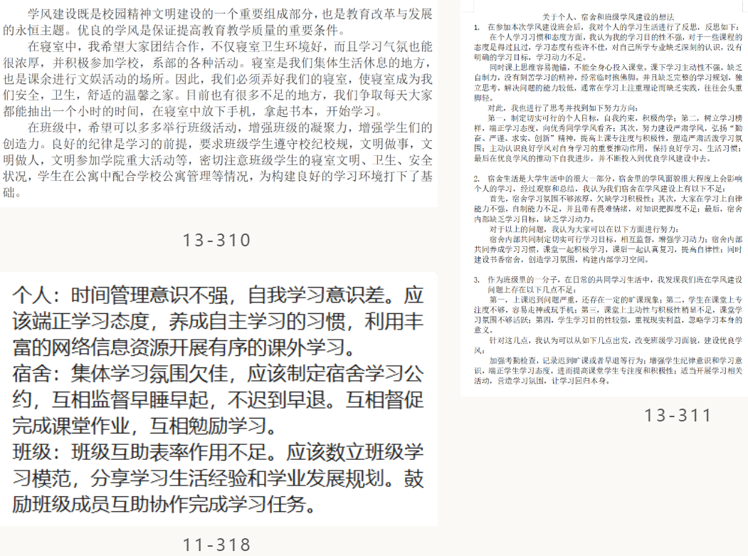会后,同学们对个人、宿舍、班级学风建设方面的不足和努力方向提出了自己的想法,凝聚班级智慧,彰显班级力量。相信通过本次学风建设同学们能够养成良好的学习习惯,积极认真主动学习,共同将2021级图书班建设为勤奋肯学、扎实努力的优秀班级。