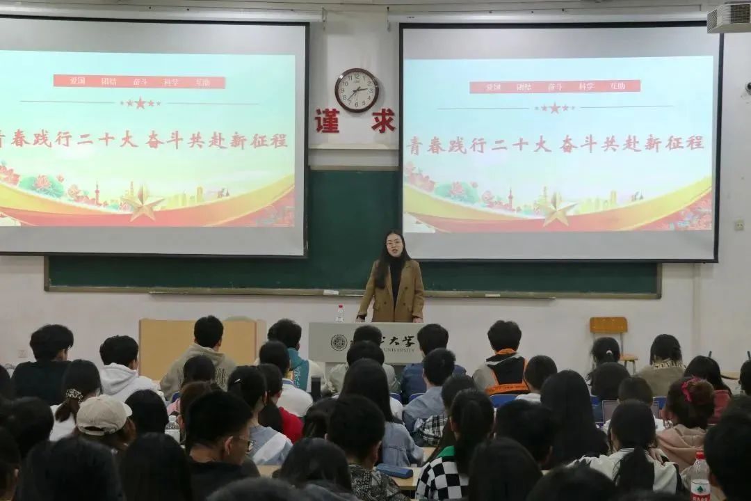 2023年3月8日下午14:00,565net必赢2023年春季学期“开学第一课”主题教育宣讲会在长安校区1J101教室召开。学院党委副书记韩杰老师、2022级本科生辅导员王晶玉老师、2022级全体本科生参加了本次活动,活动由王晶玉老师主持。