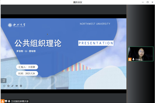 2021级行政管理专业研究生王欣颖分享的书目是罗伯特·B·登哈特的《公共组织理论》,其汇报从书目背景、主要内容、评价和现实应用四个方面展开,汇报的重点则是登哈特对公共组织理论的思考、对新公共服务理论的思考,以及价值理性的思考。首先,她简要介绍了本书的写作背景。其次,她对本书的主要内容进行了详细介绍,她指出本书的内容主要围绕着公共组织理论的思想传承、公共组织理论的政治传承、理性的组织模型、人本主义、政策要义、公共行政与新公共服务、作为理论家的实务者等几个方面展开。最后,她在对该书进行逻辑梳理之后,对本书进行了整体性思考,认为《公共组织理论》一书系统反思了以往公共行政理论的优点与不足,创造性地提出了关于公共行政理论的新认知,对我国公共组织学研究的方法论改进和公共服务型政府的建设具有深刻的现实意义。