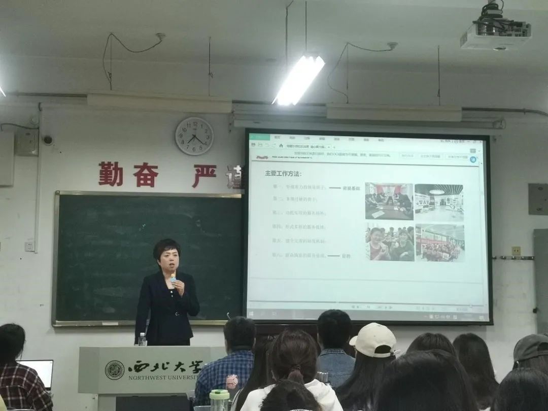 2023年9月27日晚,党的二十大代表、陕西省西安市莲湖区桃园街道劳动一坊社区周建玲书记在长安校区1209教室为我院2023级全体硕士研究生作了题为“党建引领社区治理,凝心聚力服务居民”的专题讲座。