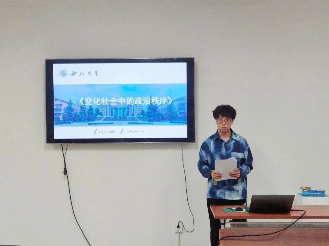 2022级行政管理专业硕士研究生吴重阳与大家分享了约翰·克莱顿·托马斯的《变化社会中的政治秩序》一书,他从作者简介和写作背景、书籍内容概括、核心要点梳理和读后反思与评价四个方面进行汇报。首先,他介绍了本书的主要内容:导致发展中国家在政治现代化过程中出现政治动荡的原因以及如何实现政治现代化。紧接着,他分析了本书的核心观点,即亨廷顿提出的强大政府理论的现实意义,以及本书的主体逻辑——现代性孕育着稳定,但是现代化过程却是不稳定的。最后,通过对政治现代化和政治稳定这两个概念的梳理,他提出了自己在阅读中产生的困惑和对本,自己的启示和收获。