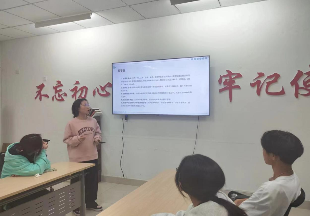 在介绍完我院资助工作的主要内容后,她针对各班在现阶段资助工作中遇到的问题提出了建议,强调信息收集的准确性与回复的及时性,有利于帮助各班相关学生干部调整好工作节奏,提升其工作效率。