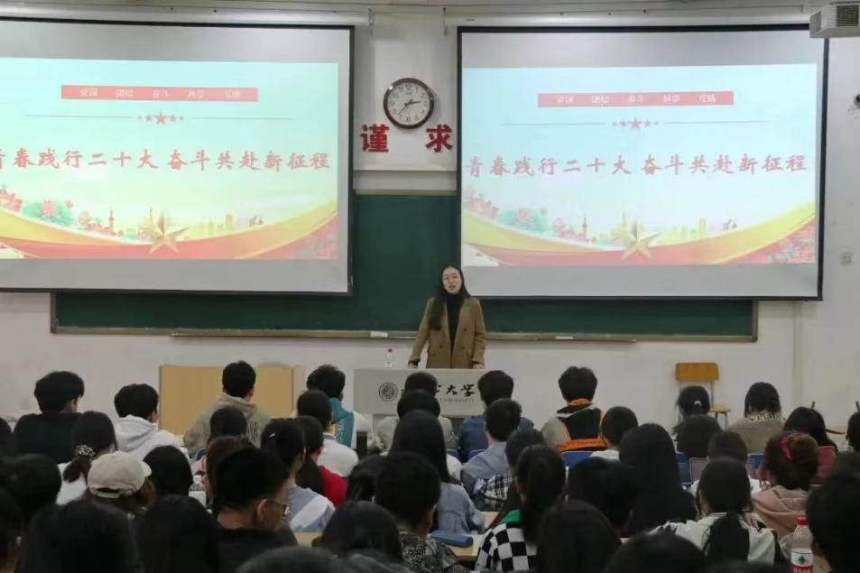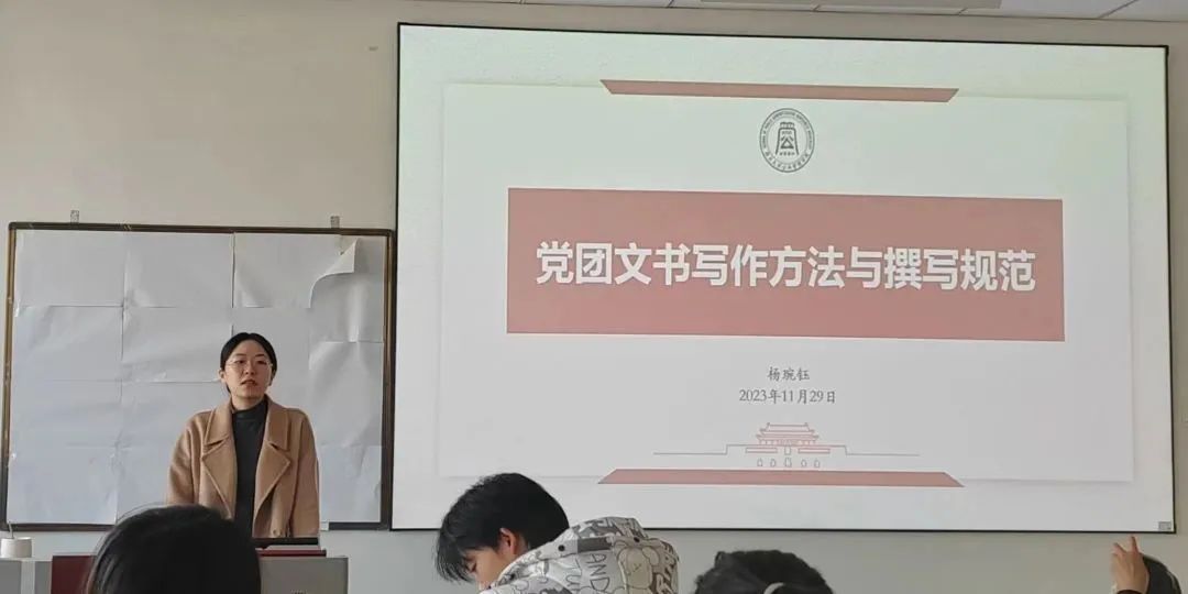在系列团课宣讲中,陈露老师根据《反对本本主义》为大家解答了如何应对就业难题、如何理解和开展调查工作、团干如何要求自身三个问题;苏林老师以“以三道光照亮民族复兴的前进道路”为主题,回溯了一代代中国青年的接续奋斗的历程,激励学生从中汲取自立自强奋斗的精神力量,将小我融入到民族复兴的伟业中,实现自身蓬勃发展;杨琬钰老师系统讲解了党团文书写作方法与撰写规范,引导学生们培养良好的学习习惯,提升语言文字表达能力与文书写作能力,锻炼扎实的文字功底;王晶玉老师通过领学《中国共产主义青年团章程》,带领学生们了解中国共青团的历史使命,引导学生深入思考如何成为一名合格的共青团员。
