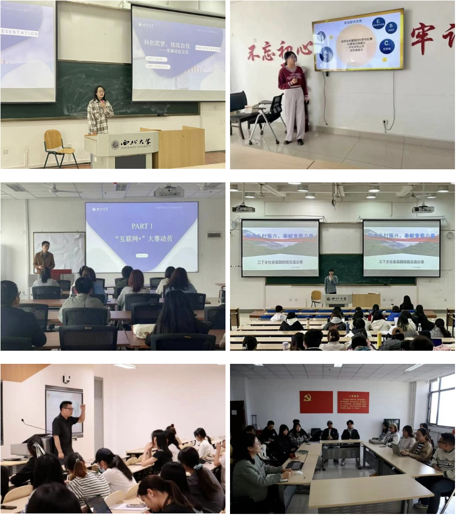 为进一步涵养优良学风,营造浓厚学术氛围,增强学生自主创新创造意识,激发学生参与科创竞赛的热情与信心,学院举办“科创筑梦,挑战自我”竞赛经验分享交流会、“挑战杯”竞赛经验分享会、“互联网+”备赛培训专题讲座、暑期“三下乡”社会实践活动经验分享会等主题活动,有效增强了同学们的学术意识与科研素养,点燃了同学们的参赛热情与创新精神,有力助推“知创学创”学风的塑造弘扬,为后续备赛工作打下了良好的基础。2023年,我院共30支队伍参加第十一届“挑战杯”大学生创业计划竞赛,赛前共举办2场学术经验分享会、1场专题讲座;共26支队伍参加西北大学大学生创新创业训练计划项目,其中获校级立项25项;共14支队伍参加第八届中国国际“互联网+”大学生创新创业大赛,其中有1支队伍在省级复赛高教主赛道中获铜奖、1支队伍在省级复赛青年红色筑梦之旅赛道中获铜奖、1支队伍在校内选拔赛高教主赛道中获银奖,赛前举办1场备赛培训专题讲座;共44支队伍参加大学生暑期“三下乡”社会实践活动,其中1支队伍获省级优秀团队、5支队伍获校级优秀团队、3位老师荣获“优秀指导教师”、21位同学荣获“先进个人”、4支队伍撰写的实践调研报告被评为“优秀调研报告”、565net必赢荣获“优秀组织单位”。