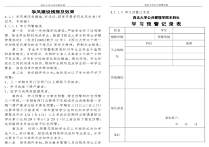 学院不断创新学风建设机制,以富有活力的制度保障,为学院学风建设构筑坚实基础。制定出台并严格落实学生课堂违纪处理办法、学习预警制度、学院联系家长制度、学生请销假制度、学生离校登记制度、晚点名制度、奖学金评定制度等规章制度,引导学生遵守学习纪律规范。