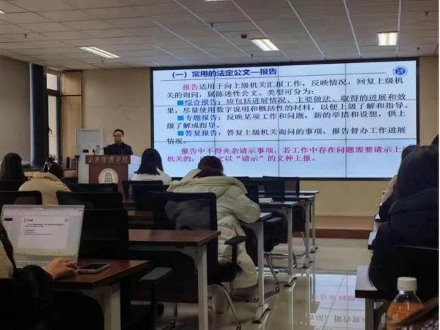 学院举办“正诚杯”公文写作大赛系列培训讲座,邀请周文光老师、文昊宇老师和梁木老师分别作行政职业能力培训讲座、“2024国家公务员考试申论应考能力提升”专题讲座和“常用公文写作:思维方法和实践路径”专题讲座。3次讲座通过基础知识阐明、案例讲解分析等方式,将公文写作思维与实践路径方法最大程度融入讲座为容中,促进了学生的理解,提升了应届生公文写作水平。