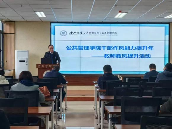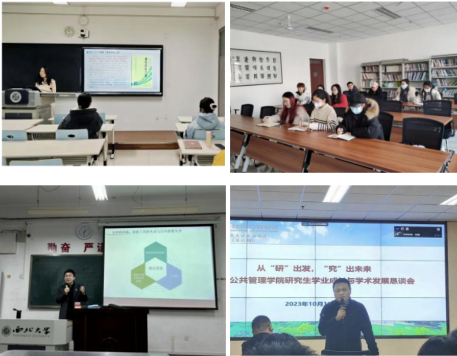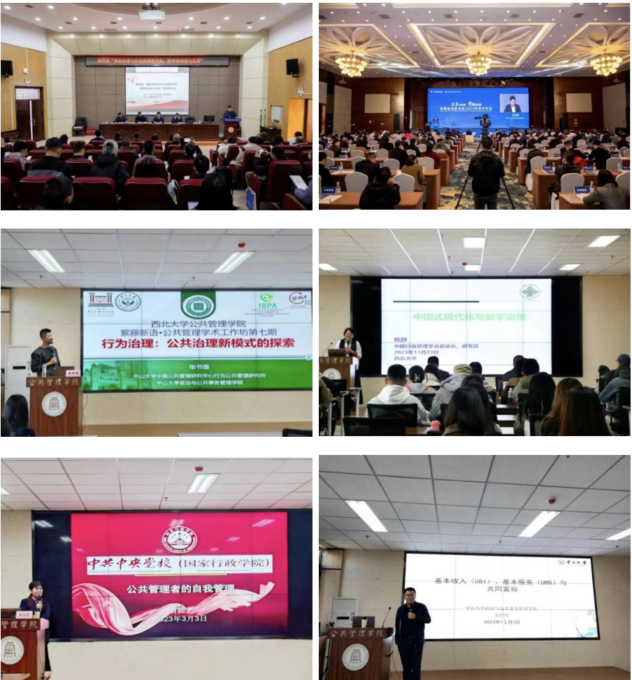 依托紫藤新语·公共管理学术工作坊、侯外庐学术讲座、名家讲坛等平台,学院邀请专家开展高水平学术报告与前沿讲座,开拓教师学术思维。组织举办第四届“国家治理与社会治理现代化:跨学科对话与反思”学术研讨会、第四届公共管理基础理论与“大问题”研讨会、文化和旅游公共服务深度融合发展理论与实践研讨会、陕西省保险学会2023年学术年会等大型学术盛会,搭建学术交流平台,不断增强教师队伍专业素养。