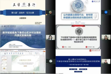 学院以“以治理现代化推进中国式现代化”为主题举办陕西省高校公共管理学子论坛暨第九届“启航杯”征文比赛。经过专家盲审评选,于线上召开决赛答辩,参赛者围绕自己的文章进行答辩,答辩过程精彩纷呈。比赛的成功举办,促进了陕西省公共管理类、经济管理类在校生科研交流与学术联系,凝聚了良好的学术交流氛围,激发了学生的学术热情,拓宽了学生的学术视野。