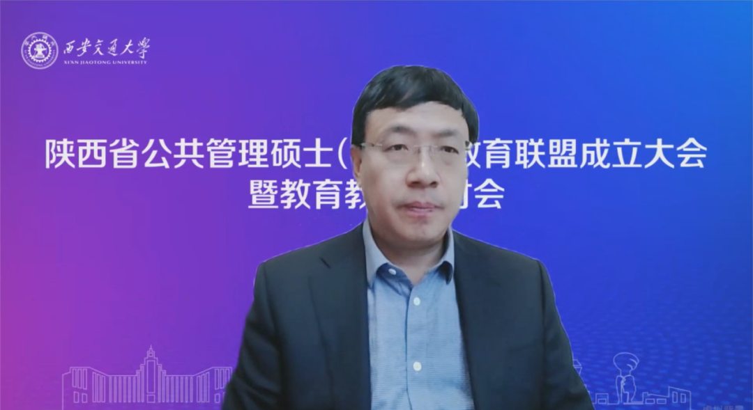 陕西省公共管理硕士(MPA)教育联盟理事长、西安交通大学公共政策与管理学院院长周忠良教授对全体与会人员的到来表示欢迎和感谢。他表示,西安交通大学MPA教育中心作为全国首批公共管理硕士(MPA)培养单位,办学上突出研究与应用相结合、多学科交叉、国际化等特色,培养了2000多名应用型、综合型、专业化的职业公共管理人才。对于联盟未来工作的着力点,他提出,一是加强省内合作交流,实现资源共享;二是打造品牌项目,提升陕西省公共管理学科发展水平;三是联盟将扎根中国、携手世界,为我国公共管理事业的发展、培养优秀公共管理人才作出更大贡献。