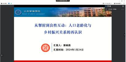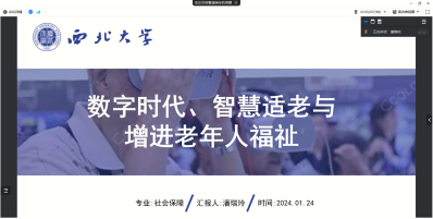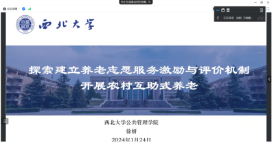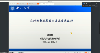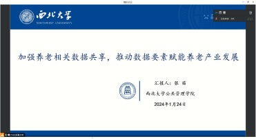 1月24日,西北大学社会保障研究团队在线上召开2024年第一期(总第31期)正学研讨会,学习研讨国务院办公厅近日发布的《关于发展银发经济增进老年人福祉的意见》。会议伊始,吴玉锋教授首先介绍了西大社保团队举办“银发经济论坛”的初衷及要求,希望师生能够通过对国家最新出台的民生政策的持续交流与研讨,加深对社保研究中前沿话题的把握与理解。本次研讨会分为养老产业专题、养老服务专题、智慧养老专题和养老支持专题四个单元,唐丽娜副教授、郝玉玲副教授、李东老师、王昭茜老师等共有37名师生在线参与了此次研讨。