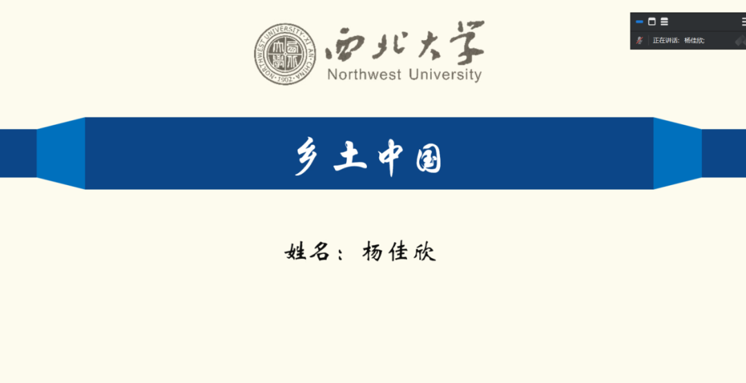 2021级图书馆学杨佳欣同学分享的书籍为费孝通的《乡土中国》。她首先介绍到本书是社会学著作,首次出版于1948年,是学界共认的中国乡土社会传统文化和社会结构理论研究的重要代表作之一。她分别从乡村社区、文化传递、家族制度、道德观念、权力结构、社会规范、社会变迁等诸多方面介绍了中国乡土社会的结构及其本色。紧接着,她指出费孝通采用了社区分析的研究方法,通过研究人们生活的时空坐落,来研究各种社会制度以及社会结构,该书具备鲜明的中国特色。