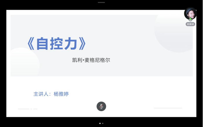 (杨雅婷同学分享了凯利·麦格尼格尔的《自控力》)