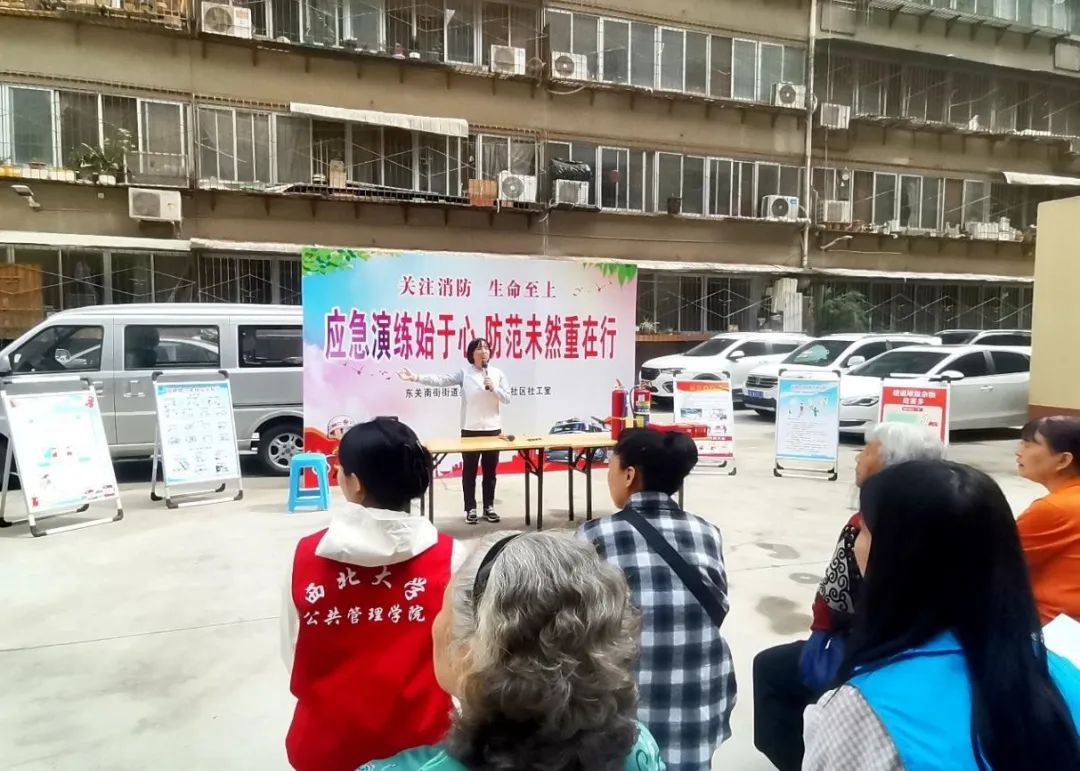 今年5月12日是我国第15个全国防灾减灾日,5月7日至13日为防灾减灾宣传周,为切实增强全民防灾减灾意识,提高全民消防安全意识和应急处理能力,2024年5月11日,565net必赢与历史学院研究生会组织学生志愿者赴碑林区东关南街街道卧龙社区开展“应急演练始于心,防范未然重在行”消防安全知识宣传活动。