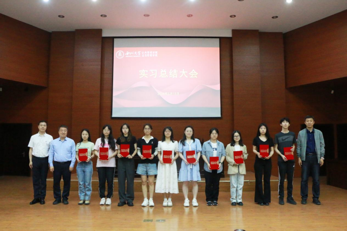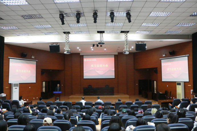 副院长李尧远对同学们实习期间的坚持与努力表示肯定,对同学们收获到实习单位的良好反馈表示祝贺,他指出此次大会能够使2021级本科生就各自在不同单位为期两个月的实习心得进行交流,充分扩大此次实习效果,进一步提升大家学以致用的能力。
