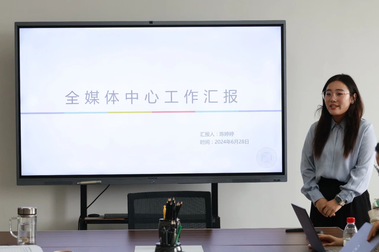 (2021级人力资源管理专业本科生陈婷婷对我院全媒体中心的本学年工作进行了汇报总结)