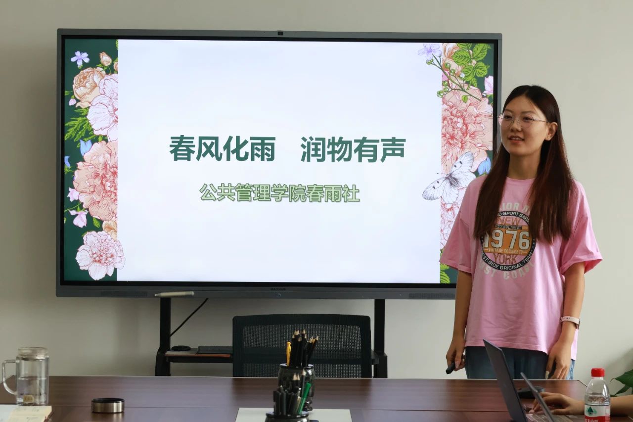 (2022级人力资源管理专业本科生刘梦情对我院春雨社的社团工作进行了汇报总结)