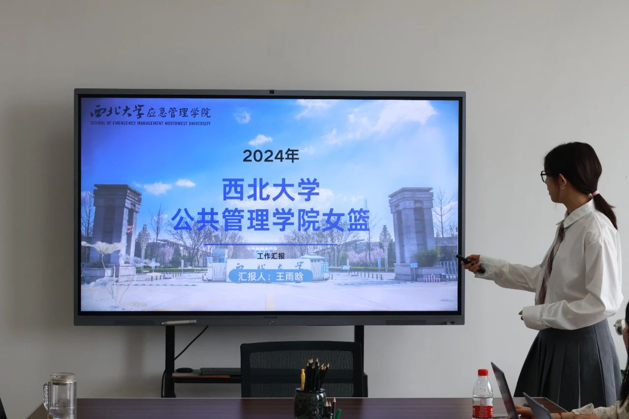 (2022级行政管理专业本科生王雨晗分享汇报了我院女篮本学年度的工作)
