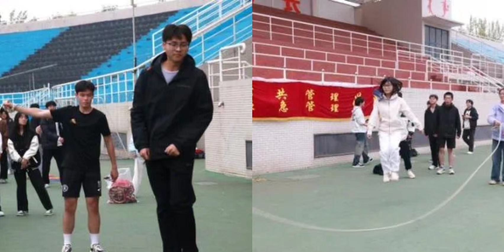 长长的绳在空中快速飞舞,发出“呼呼”的响声,仿佛在奏响一曲充满活力的乐章,参赛者们如同灵动的音符,在这乐章中欢快地跳跃。轻盈跃起,敏捷地穿过飞舞的绳,迅速跳出,如同舞动的精灵。