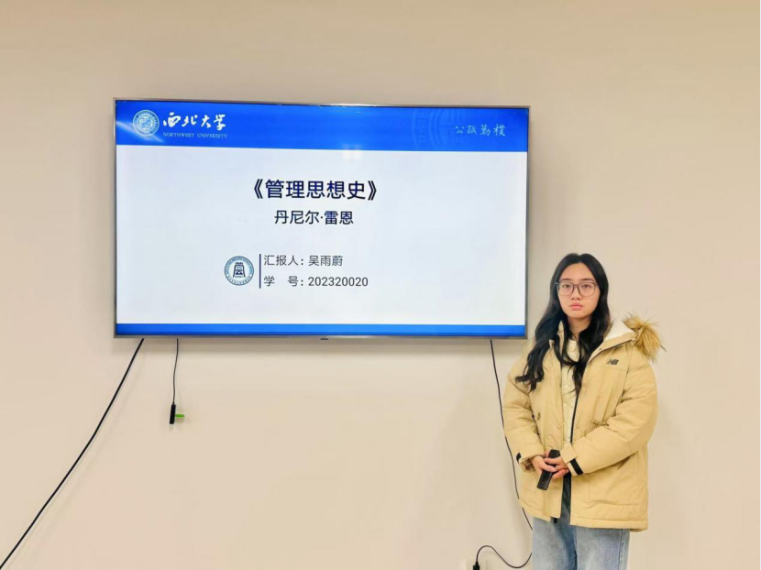 2023级社会保障专业硕士研究生吴雨蔚分享的书籍是丹尼尔·雷恩的《管理思想史》,她从作者简介、内容概述、阅读感悟三个方面展开。在分享中,该同学主要从早期管理思想、科学管理时代、社会人时代、当代四个阶段总结了不同时期的管理思想代表人物和他们的主要思想。如马克斯·韦伯提出了官僚层级制理论。韦伯认为,官僚层级制是一种高效、理性的组织结构,它能够实现组织内部的分工和专业化,提高组织的稳定性和可预测性。这一理论为后来的组织管理和行政学研究提供了重要基础。在阅读过程中,该同学深刻感受到了管理思想的演变是一个动态的、不断发展的过程。从最初的对生产工艺、流程管理的研究,到现在对人与人之间关系的重视,管理思想不断适应着经济、社会和政治环境的变化。同时,她也被书中介绍的各位管理学者的智慧和洞察力所折服,他们的思想不仅在当时具有开创性,而且至今仍对现代管理实践具有重要的指导意义。
