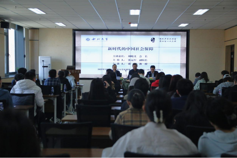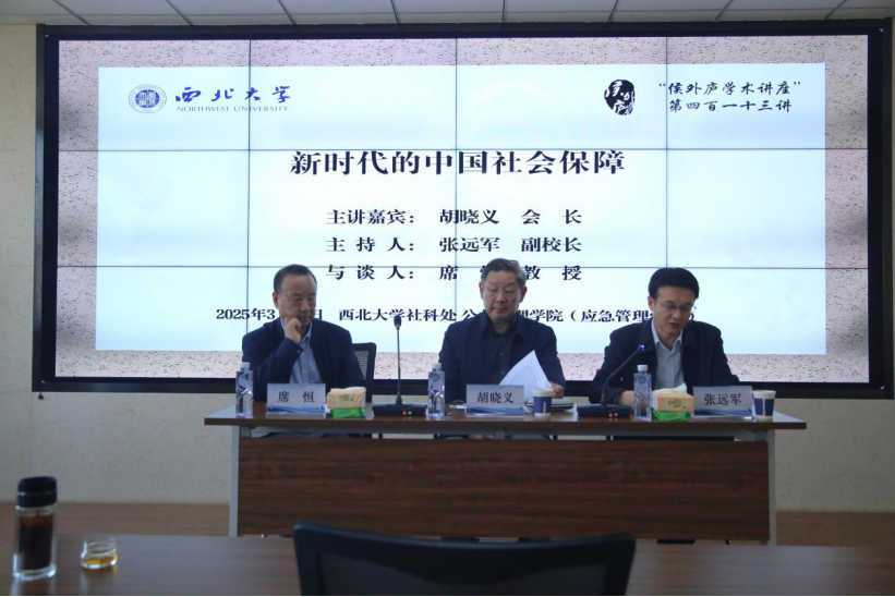 2025年3月24日下午,西北大学社科处和565net必赢客户端联合举办的 “侯外庐学术讲座”第四百一十三讲在长安校区565net必赢多媒体会议室成功举办。中国社会保险学会胡晓义会长受邀作了题为“新时代的中国社会保障”的学术报告。西北大学副校长张远军主持了本次讲座。