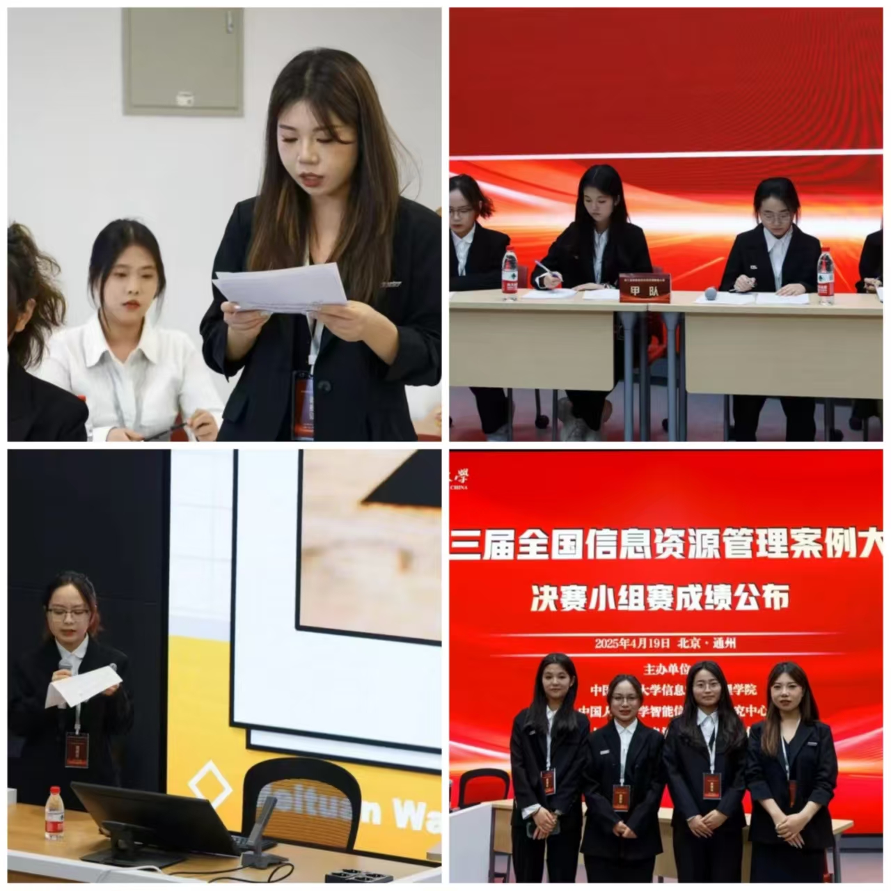在 4 月 21 日落幕的第三届全国信息资源管理案例大赛中,由我院2022级本科生庄苗、张雅琪、张宇迪同学和2024级研究生郑嘉璐同学组成的“城垣数字守护队”在付熙雯老师的带领下,凭借出色的表现成功入围总决赛,并荣获二等奖,我院付熙雯老师获得优秀指导教师奖。此次大赛聚焦人工智能时代下的信息生态,吸引了众多高校学子参与,竞争异常激烈。我院参赛队伍凭借扎实的专业知识和创新的案例分析在众多队伍中脱颖而出,队内本科生成员还获得了中国人民大学信息资源管理学院2026年夏令营直通资格。这一成绩的取得,离不开我院在信息资源管理学科建设上的持续深耕,以及对本科生科研创新能力培养的高度重视。