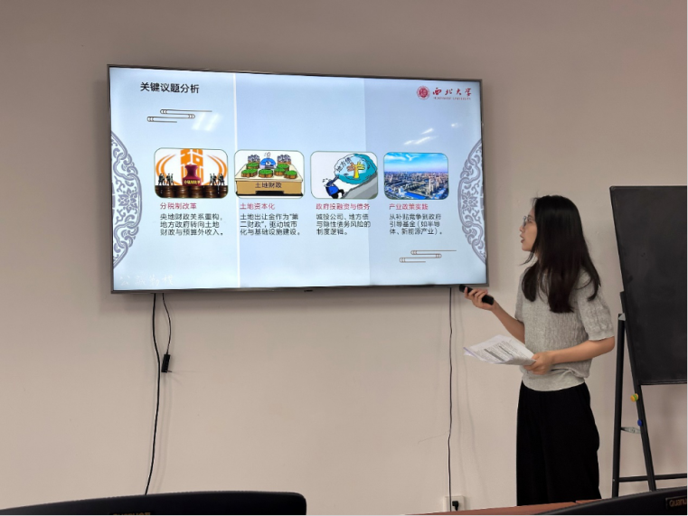 2024级行政管理专业硕士研究生石雨格分享的书籍是兰小欢的《置身事内:中国政府与经济发展》,她从基本简介、主要内容、关键议题分析以及思考感悟四个部分展开。首先介绍了该书聚焦中国改革开放后政府与经济的互动机制,结合制度经济学与政治经济学视角进行研究和分析。其次,阐述了四大关键议题。分税制改革是中央与地方财政博弈的转折点,这一改革既推动了城市化与基建扩张,也为地方债务风险埋下伏笔。土地资本化是经济增长引擎与债务隐患,土地价格依赖持续增长预期,一旦经济放缓或地价下跌,巨额债务可能引发系统性风险。地方政府通过直接投资或补贴扶持重点产业,需基于国内市场规模和退出机制:一方面,中国庞大的内需市场可支撑规模经济;另一方面,政策需设置补贴递减机制,避免保护低效企业,同时保持市场优胜劣汰的竞争本质。最后,通过分析高房价背后的供需逻辑,阐明中国政府的“生产型”角色在特定阶段推动了高速增长,但其对债务和资源的路径依赖也暴露局限性。如何平衡“增长优先”与“风险管控”、协调中央与地方利益将成为中国经济转型的关键挑战。
