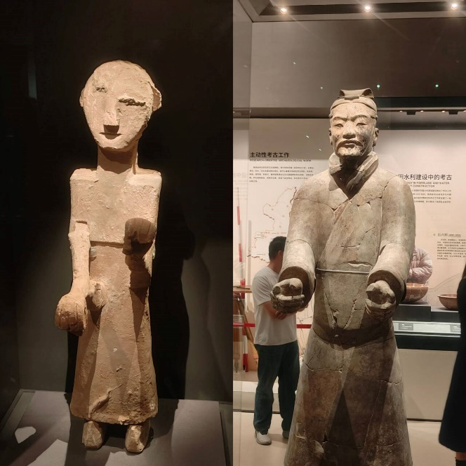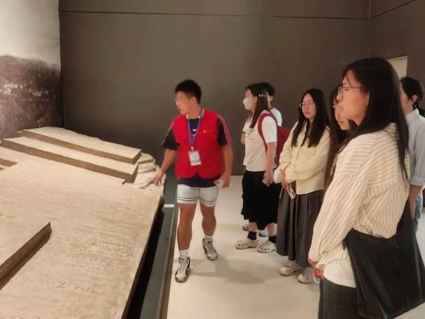 而后,同学们跟随志愿者进入“考古发现”主题展馆。讲解志愿者聚焦文明起源,详细讲解了石峁遗址、芦山峁遗址的考古突破,通过探寻雍城遗址代表的秦王朝、阳陵陶俑代表的汉王朝以及唐王朝的文物秘迹,寻踪曾经的盛世帝国。