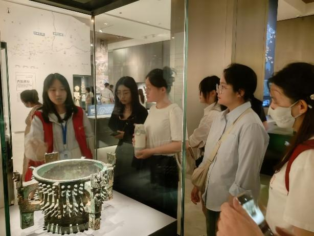 最后,志愿者带领同学们步入最后一个展厅“文保科技”展馆,在志愿者专业且精彩的讲解和答疑中,同学们对陕西各时期代表性考古成果有了深切的认识,也了解到了文物保护技术的前沿实践成果以及技术运用场景,向同学们展示文物修复工作者“巧手良医”的责任和担当。