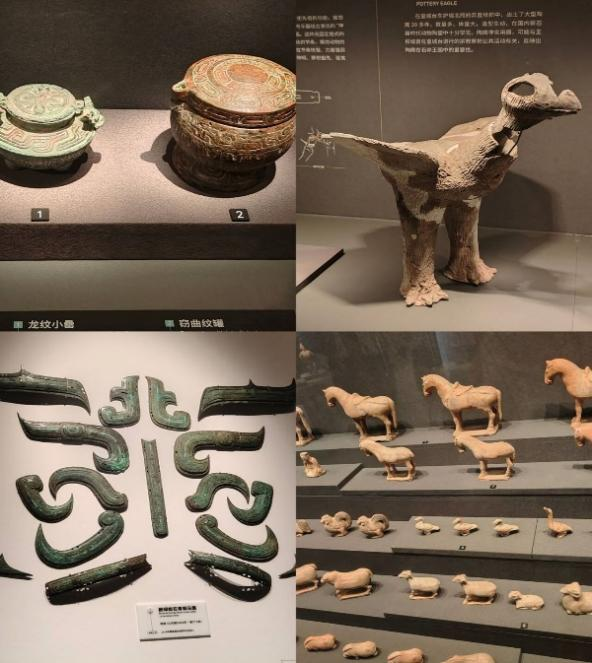 随后,同学们在下一位志愿者的带领下,进入“文化谱系”展馆,共同学习了陕西境内考古学文化谱系与人类活动脉络。从蓝田猿人、大荔人等遗址出土的化石与石器的旧石器时代,到仰韶文化、龙山文化的新石器时代,最后到青铜器、贺家马车坑的周原遗址,深刻感受到中华文化源远流长的文化脉络。