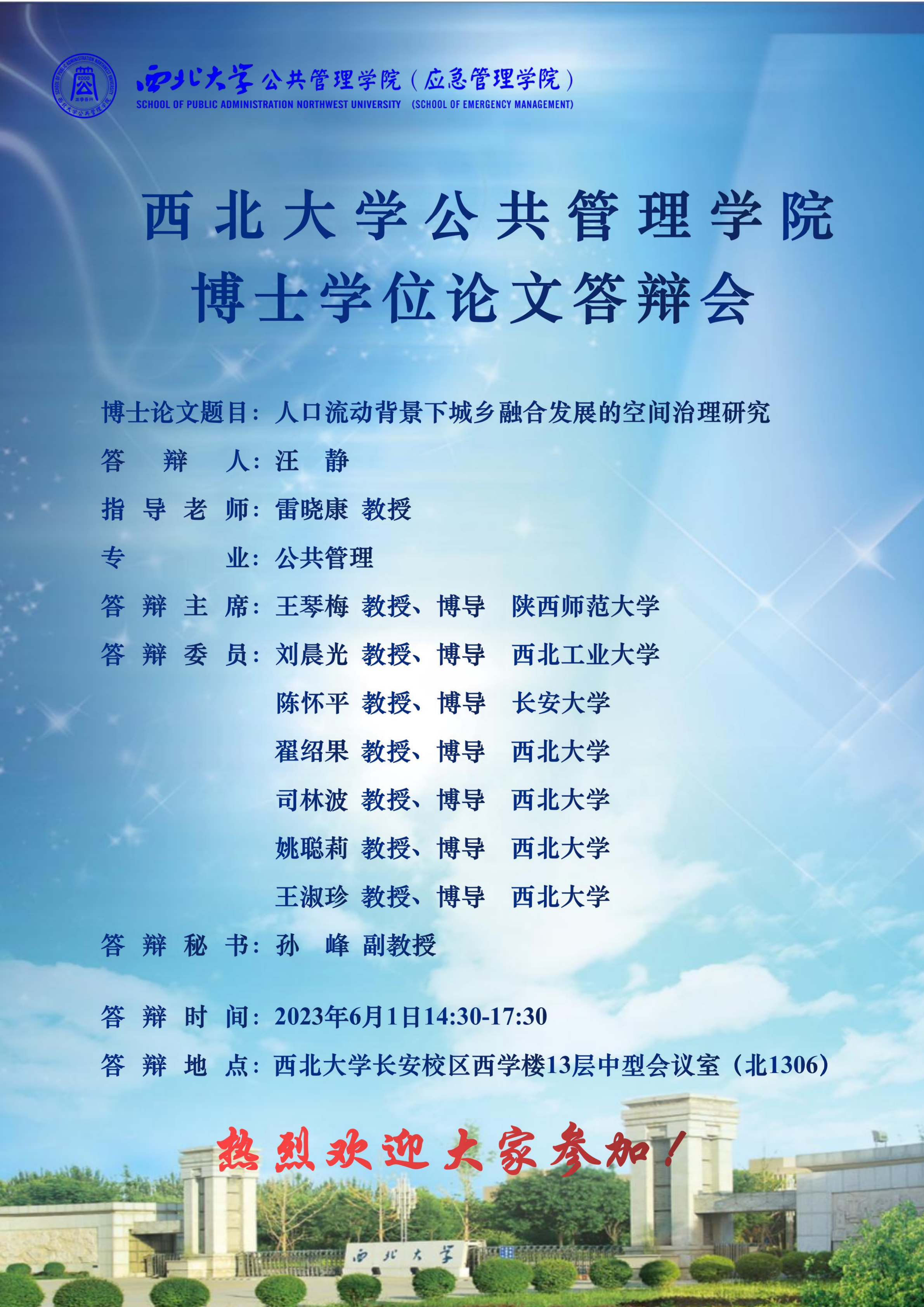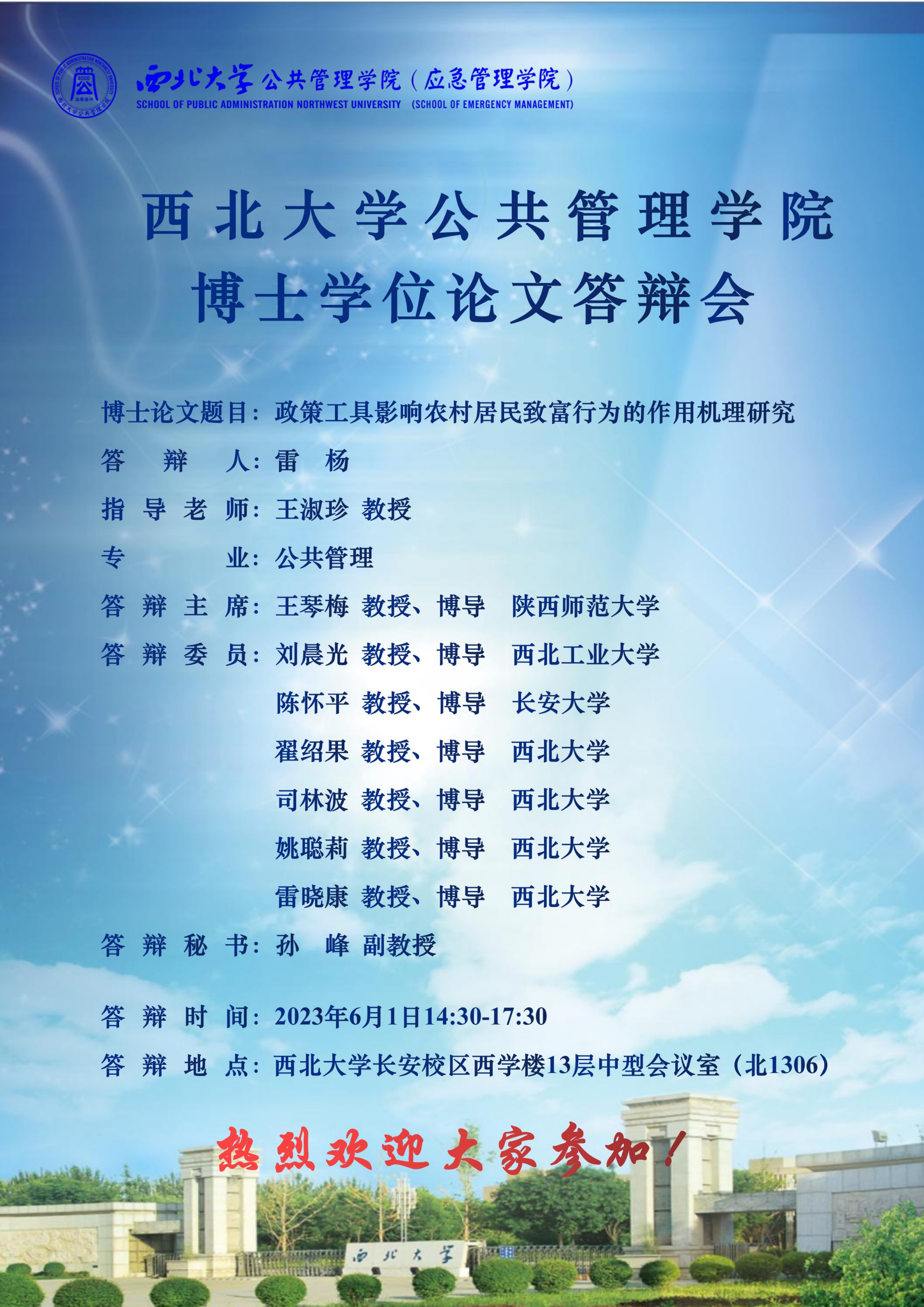 会议预告|西北大学565net必赢博士学位论文答辩会