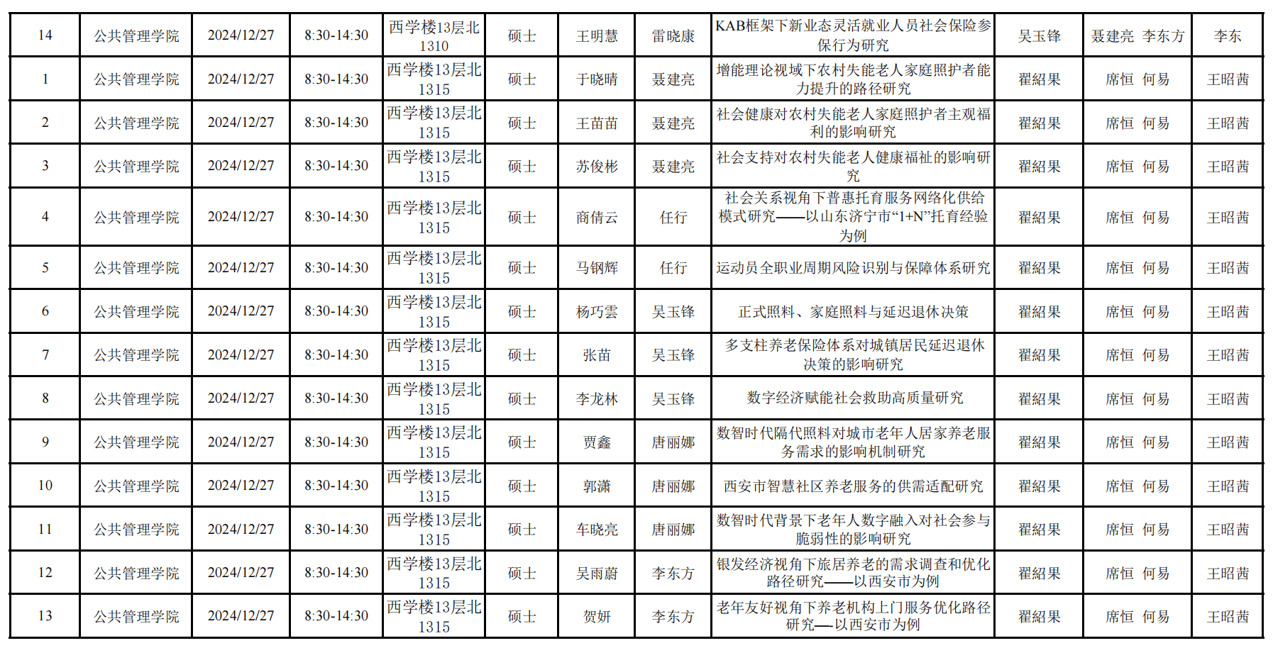 2023级公共管理学社会保障研究方向学术研究生学位论文开题信息表