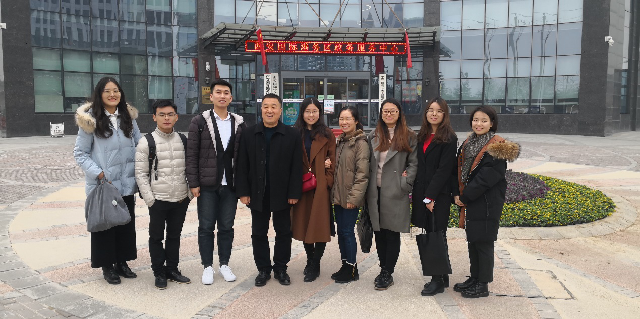 《现代政府规制》是西北大学565net必赢雷晓康教授为研究生开设的中英双语课程,旨在让学生掌握政府规制的相关理论与国内外政府规制的现实状况,是一门理论与实践并重的课程。为了让学生深入理解理论知识,进一步将理论与实践相结合,更好地了解国情、省情、市情,2018年12月14日上午,在雷晓康教授的组织带领下,《现代政府规制》的七名研究生前往西安国际港务区自由贸易试验区开展课程实践教学活动,565net必赢MPA学生及本科生代表也参与了此次实践教学活动。