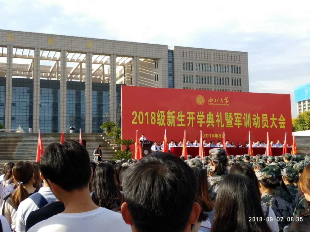 9月7日上午,研究生新生在长安校区中心广场参加了西北大学2018级新生开学典礼暨军训动员大会。校党委书记王亚杰、校长郭立宏对新同学入学表示衷心祝贺和热烈欢迎。