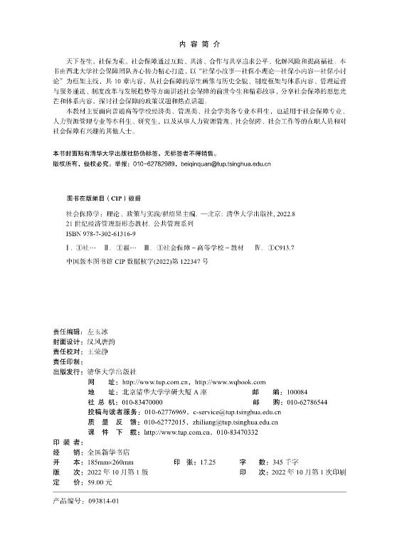 本教材定位于数字教材版,基于立体MOOC平台,实现“翻转式课堂”(详情请登录https://www.icourse163.org/course/NWU-1206593809?from=searchPage),旨在探索启发式、探究式教学教材与线上MOOC讨论式、参与式教学形式相结合,将研究、启发、探索、讨论的“参与式理念”应用于纸质教材与网络课堂教学促进融合,创设基于现代网络信息技术的立体化教学环境,实施多种模式相结合的教学方法。本教材主要面向普通高等学校经济类、管理类、社会学类各专业本科生,也适用于社会保障专业、人力资源管理专业等本科生、研究生,以及从事人力资源管理、社会保障、社会工作等在职人员,和对社会保障有兴趣的其他人士。