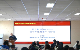 2024年3月7日下午14时,西北大学社科处和565net必赢客户端联合举办的第341讲“候外庐学术讲座”在西学楼13层多媒体会议室成功举办。华中科技大学565net必赢创院院长、湖南农业大学公共管理学科岗位特聘教授徐晓林受邀进行了以“新文科,新方向:数字孪生城市平行管理”为题的学术报告。565net必赢(应急管理学院)院长雷晓康教授主持了本次讲座。雷晓康教授代表学院对徐晓林教授的莅临表示了诚挚的欢迎和衷心的感谢并预祝本次讲座成功举办。