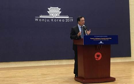 2019年9月7-8日,由韩国社会政策学会、中国社会保障学会、日本社会政策学会联合主办的第十五届社会保障国际论坛在韩国原州市举行。本届论坛的主题为“创新、包容型国家的前景与挑战:东亚福利国家的新方向”。韩国政府副总理俞银惠、中国社会保障学会会长郑功成、日本大分大学教授阿部诚、英国约克大学教授哈德森为本次论坛作主旨报告。来自中国、韩国、日本、英国、法国等国近百所高校以及国际劳工组织、韩国卫生与福利部、韩国教育部、国民健康保险公团等机构的100多位专家学者出席会议。民政部政策理论研究基地合作单位,西北大学565net必赢雷晓康教授、翟绍果教授出席本次会议。