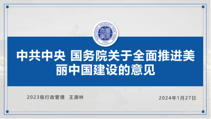 最后,王源林同学对《意见》第九节健全美丽中国建设保障体系及第十节“加强党的全面领导”两部分内容展开分析汇报从改革完善体制机制、强化激励政策、加强科技支撑、加快数字赋能、实施重大工程、共谋全球生态文明建设6个方面对健全美丽中国建设保障体系进行阐述以加强组织领导、压实工作责任、强化宣传推广、开展成效考核为切入点,对加强党对美丽中国建设的全面领导进行分析并在分享过程中阐述了自己的理解和感悟。