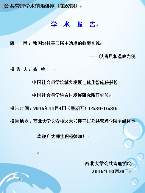 公共管理学术前沿讲座(第69期)