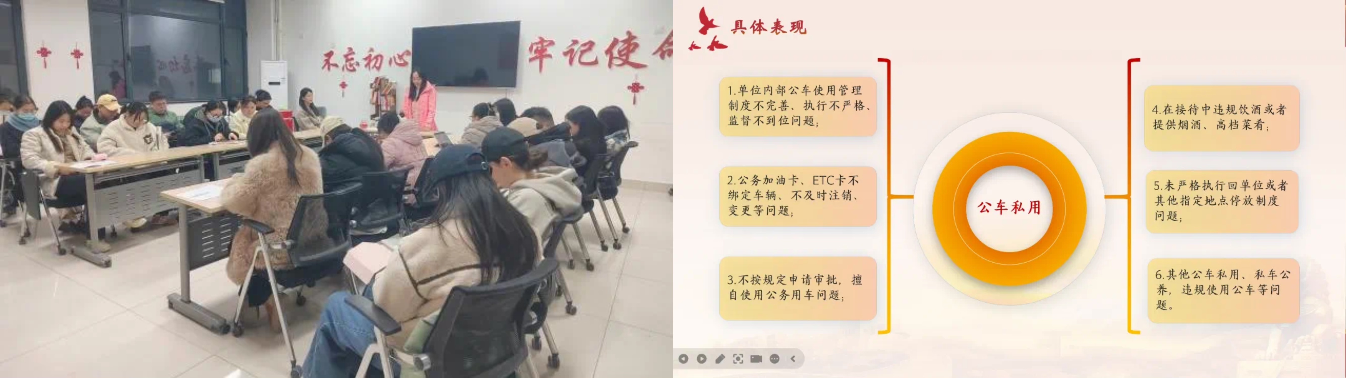 会议第一项,由支部纪检委员刘瑾祯同志带领学习中央八项规定并领会其精神。刘瑾祯同志介绍了中央八项规定的主要内容,并结合案例深刻剖析违规吃喝、公车私用、违规发放津补贴等违反中央八项规定精神的具体表现,警示全体党员切实增强纪律意识,筑牢思想防线。