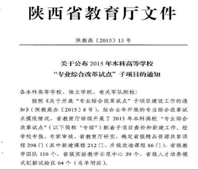 2014年,进入陕西省专业综合改革试点项目。