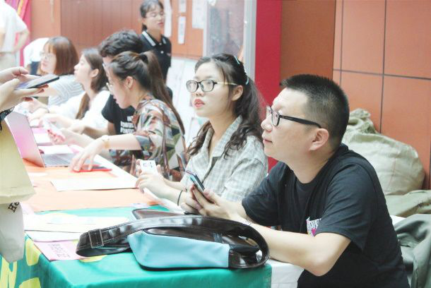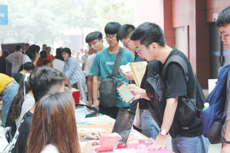 就是上午特别的忙。像我负责的工作还能应付过来,有些学生会成员负责找军训服的就满头大汗。下午报到的人明显少了很多,大家都比较轻松。