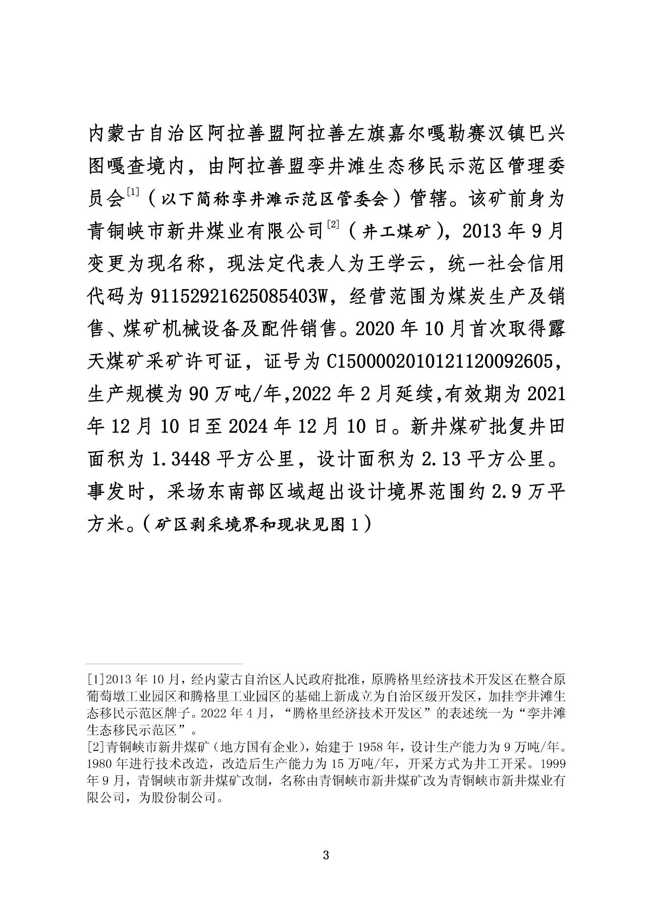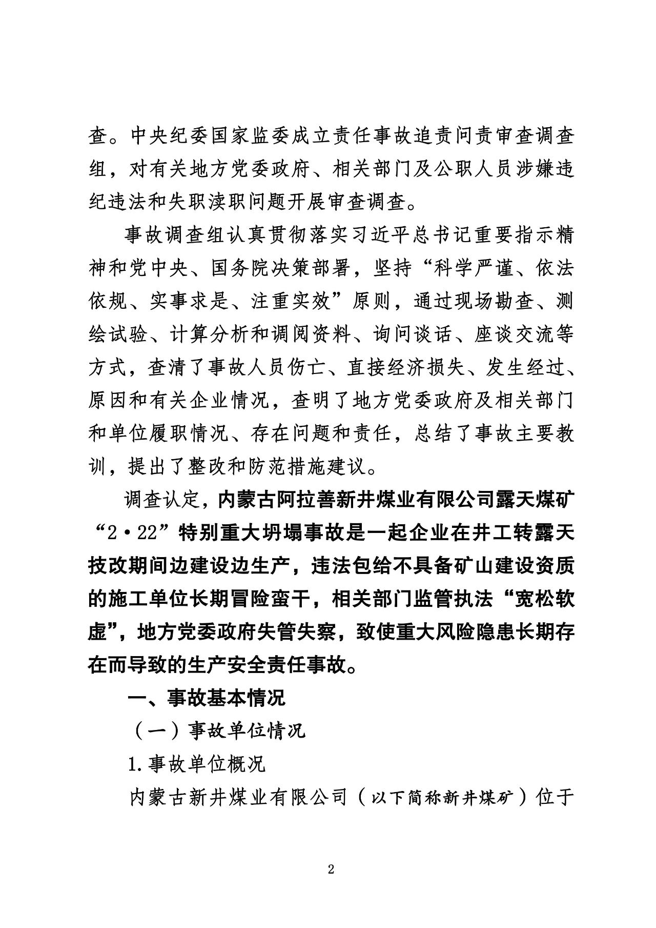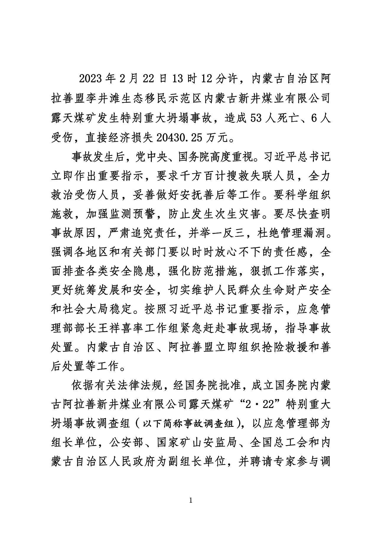 调查报告 | 内蒙古阿拉善新井煤业有限公司露天煤矿“2·22”特别重大坍塌事故调查报告