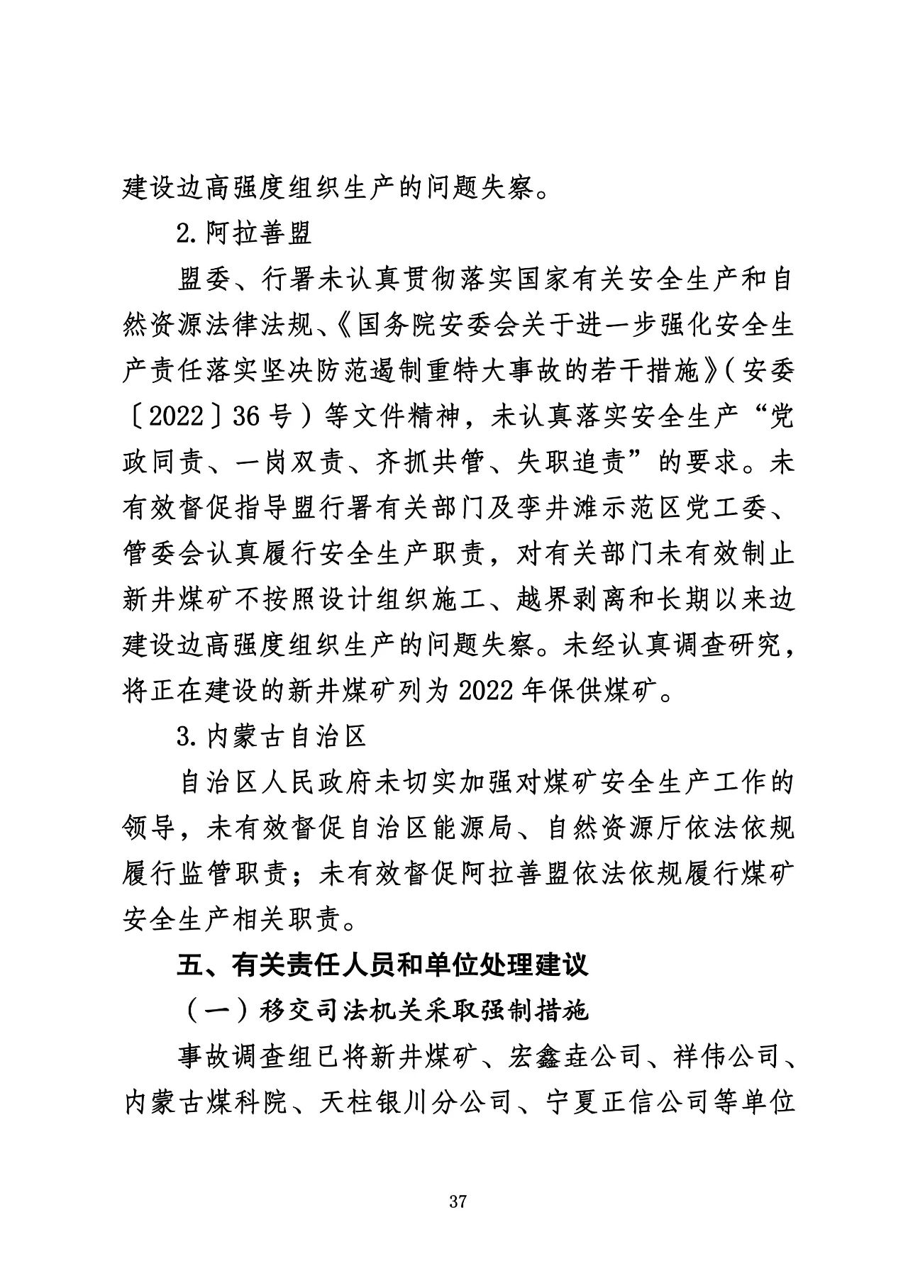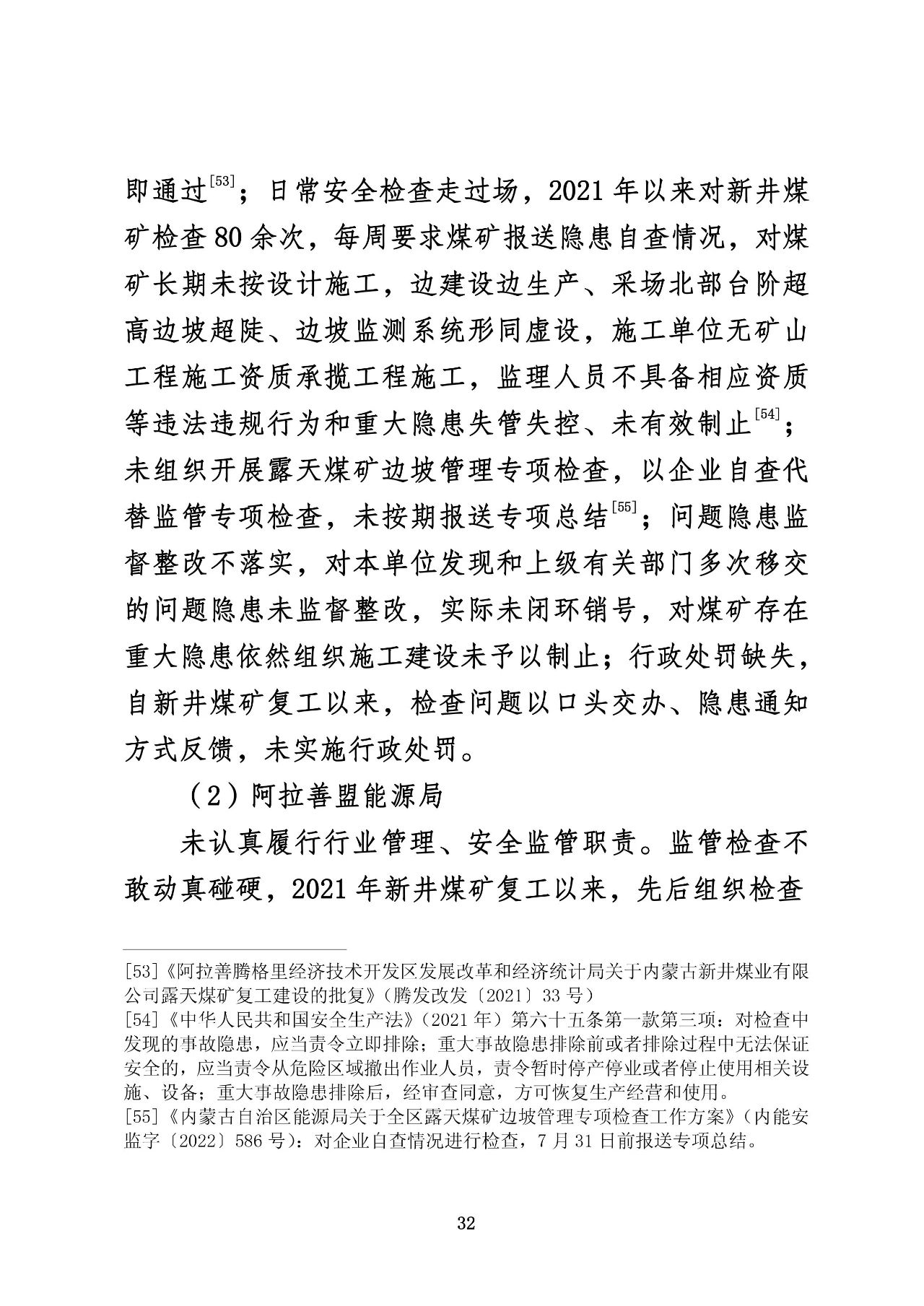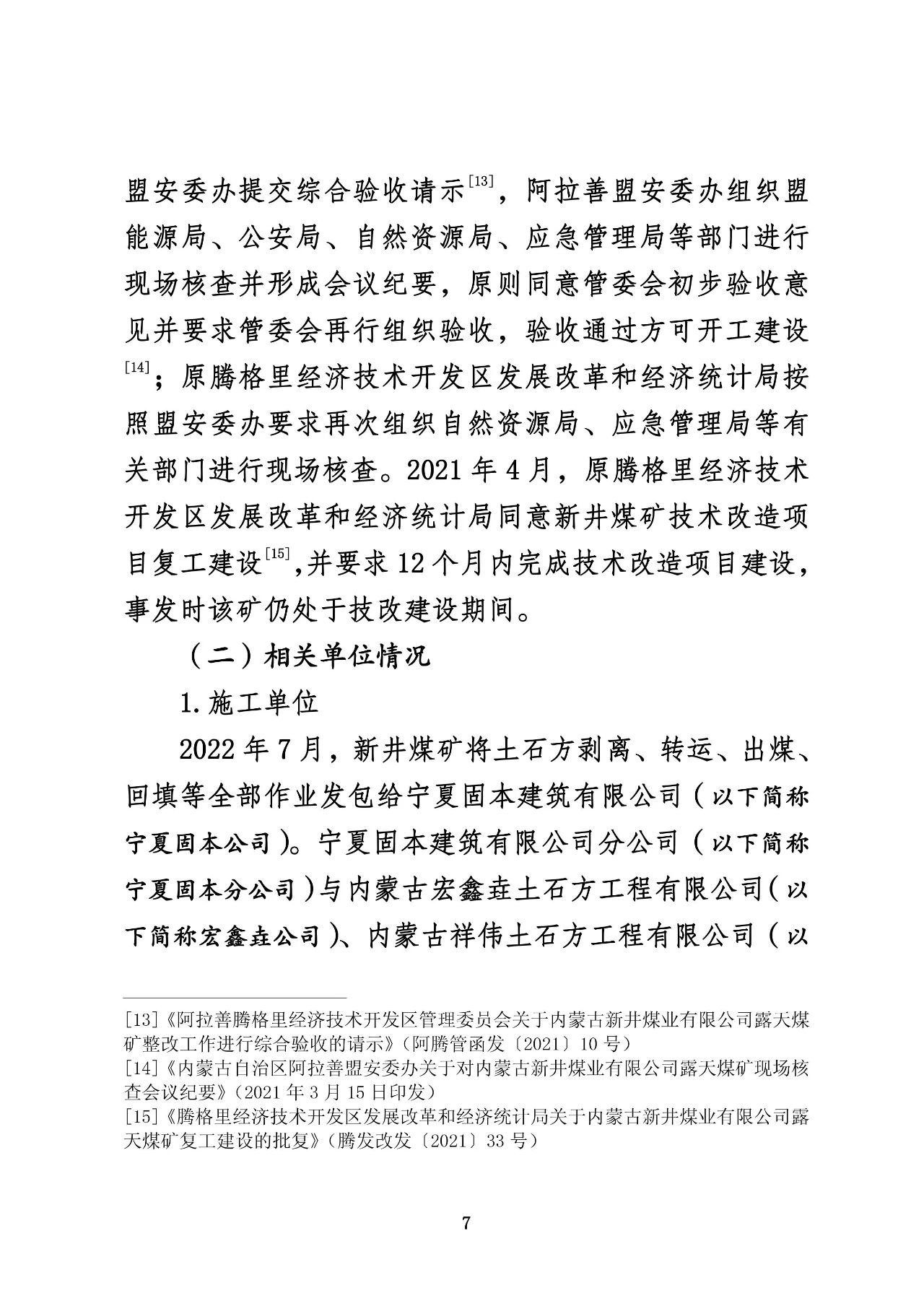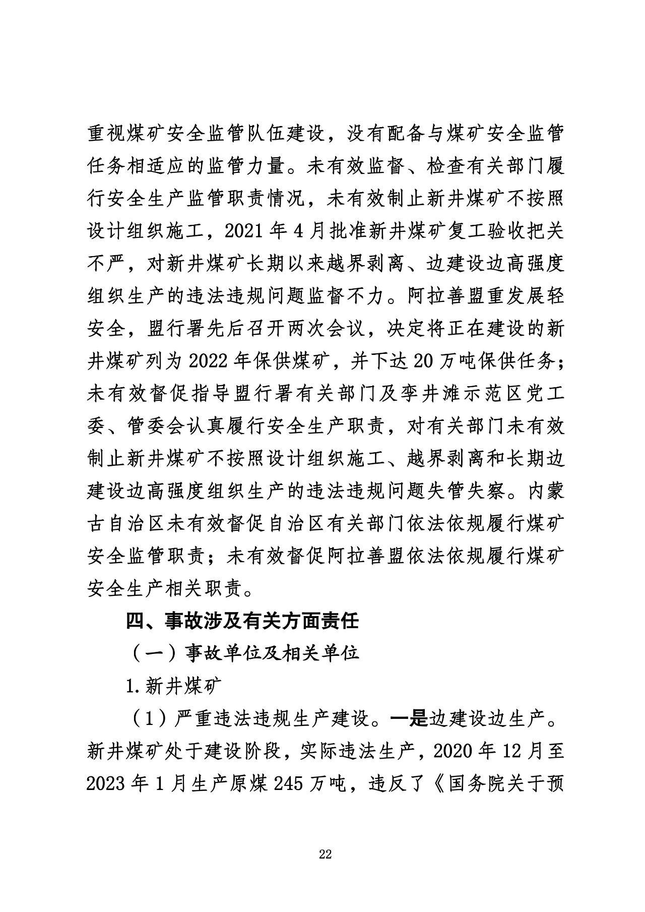 调查报告 | 内蒙古阿拉善新井煤业有限公司露天煤矿“2·22”特别重大坍塌事故调查报告
