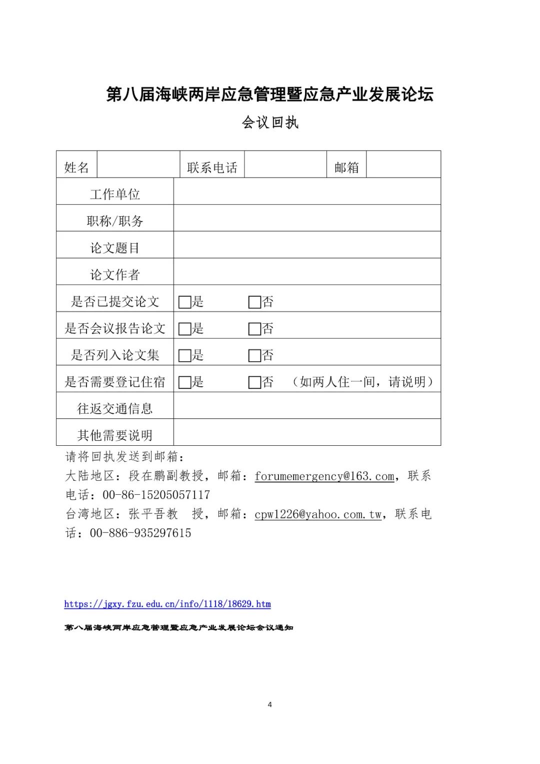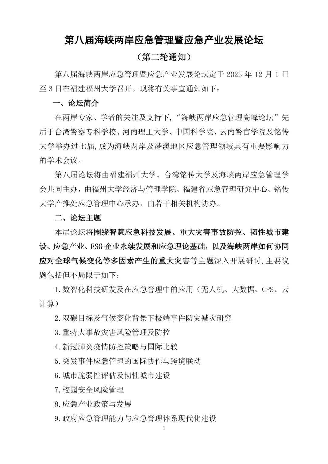 会议信息 | 联盟协办“第八届海峡两岸应急管理暨应急产业发展论坛”(第二轮会议通知)