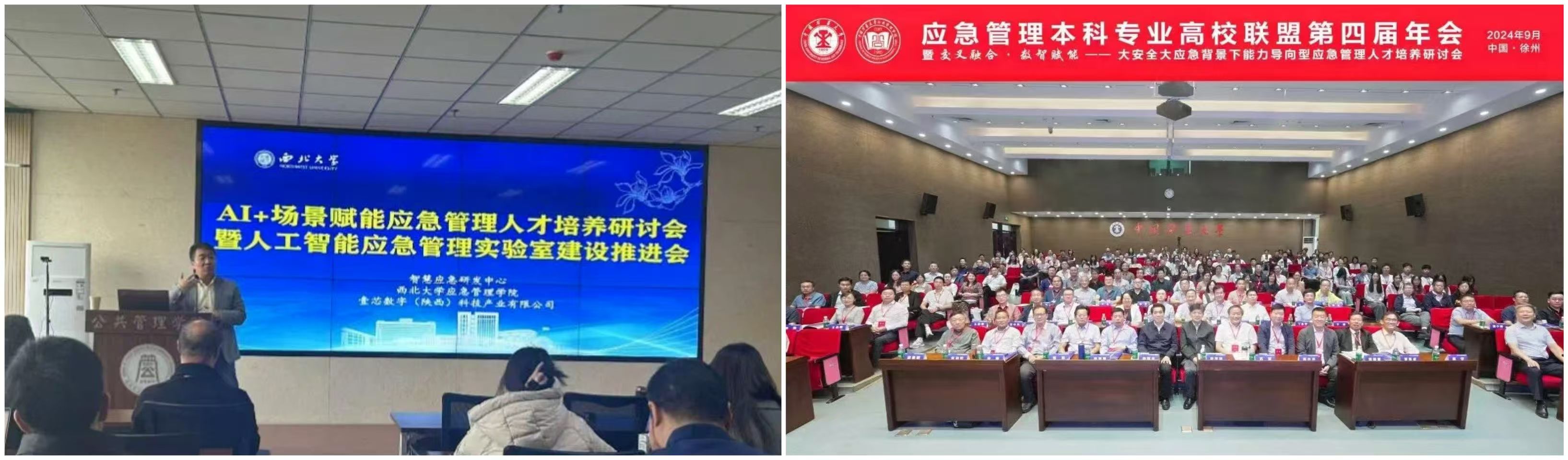 2024年,应急管理本科专业高校联盟(虚拟会议型联盟&学术共同体)策划举办了多场学术研讨会和活动,深化了对应急管理核心议题的研究。联盟成功召开的“基层应急管理与治理创新”高峰论坛,聚焦于基层应急管理的创新实践,就高效的基层治理模式进行了深入的探讨。“公共安全与应急管理本科高校核心课程教学竞赛”激发了教学创新,促进了高校间的学术交流与合作。中国应急管理学科发展论坛和长三角安全发展与应急管理研究联盟研讨会,着眼于于学科交叉融合,推动了学科间的合作与知识共享,强化了区域内高校的学术联动。西北大学应急管理学院以校企合作模式成功举办了四期产教融合研讨会,道枢(上海)数字技术有限公司、易智瑞信息技术有限公司、精景慧城科技(西安)有限公司以及壹芯数字(陕西)科技产业有限公司围绕着智慧应急、公共安全数字化技术、GIS和遥感技术、低空经济与人工智能融合、空地一体救援系统构建以及AI技术在应急管理专业人才培养中的重要性等主题,共同探讨了应急管理领域的技术创新与人才培养问题。