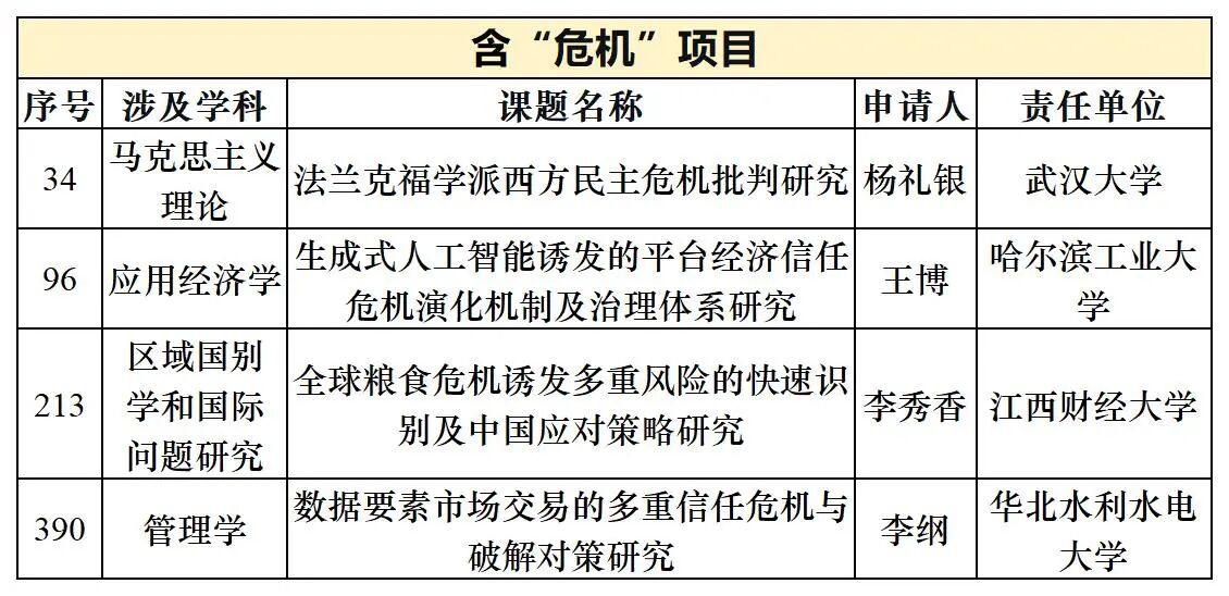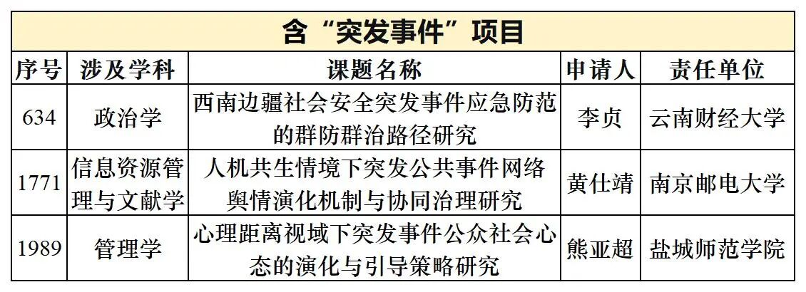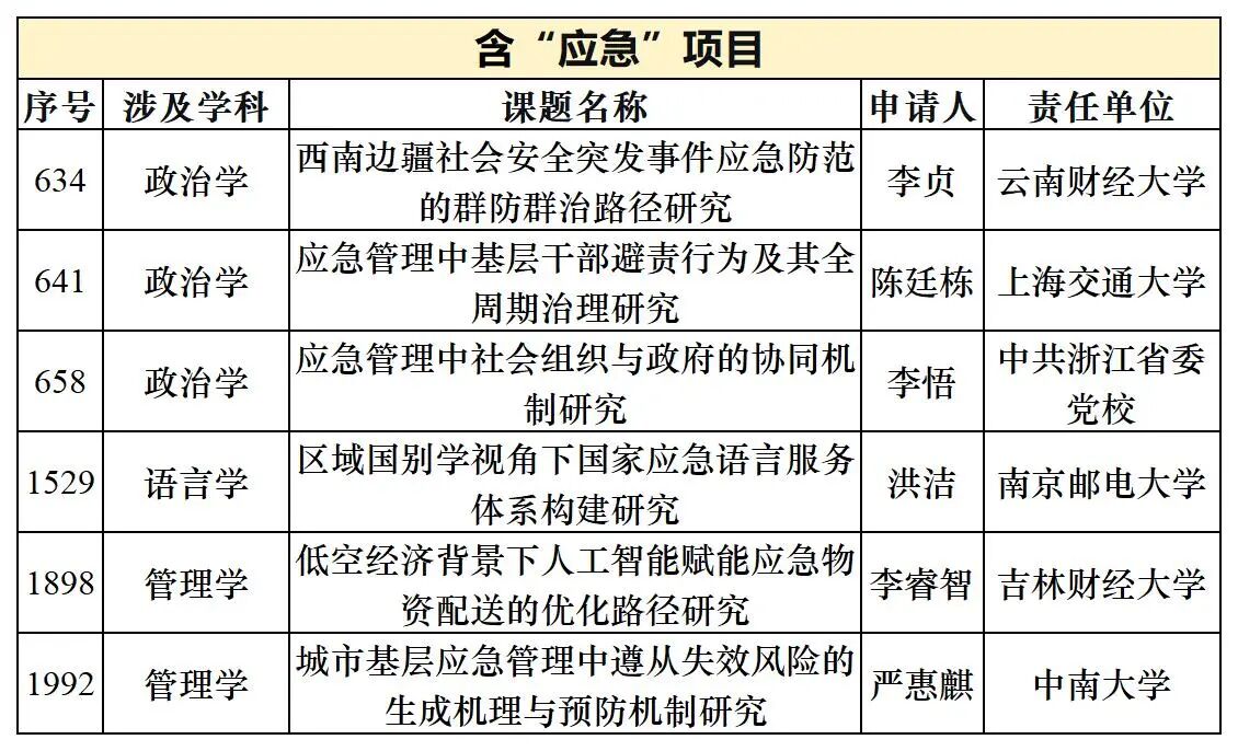 2025年国家社会科学基金项目立项结果近日公布,该文章系统整理了含安全、风险、应急、突发事件、灾害、危机、韧性的相关项目,不仅清晰展现了当前国家层面关注的研究方向与重点领域,更为学界把握科研动态、开展课题申报以及促进学术交流提供了重要参考。