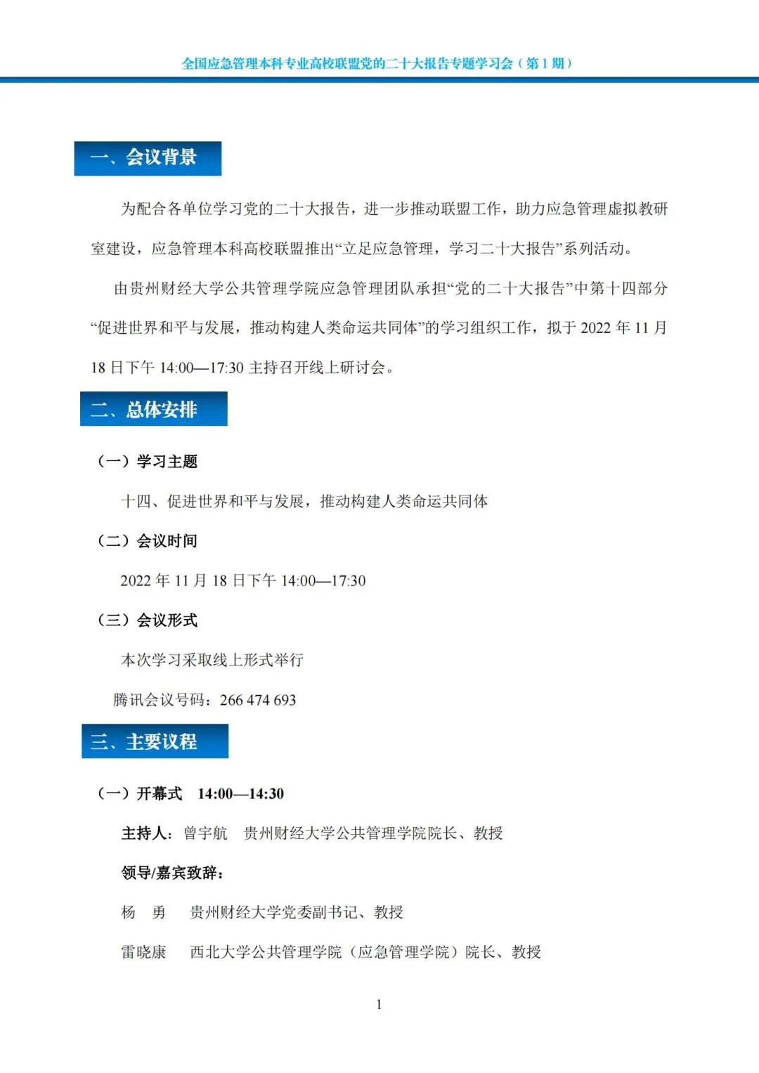 会议预告 || 全国应急管理本科专业高校联盟中共二十大报告系列专题学习会