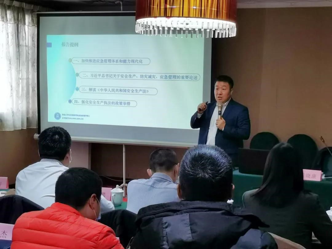 随后,西安市应急管理局总工程师刘平以“学习新《安全生产法》,履职尽责做好安全生产管理工作”为题作了培训报告。在阐释习近平总书记关于安全生产的批示指示精神基础上,他详细解读了新《安全生产法》修改的主要内容,通过大量的生产事故案例,全面介绍了安全生产基本知识及应用、事故应急管理、生产安全事故的报告统计、生产安全事故的调查处理等实务知识。